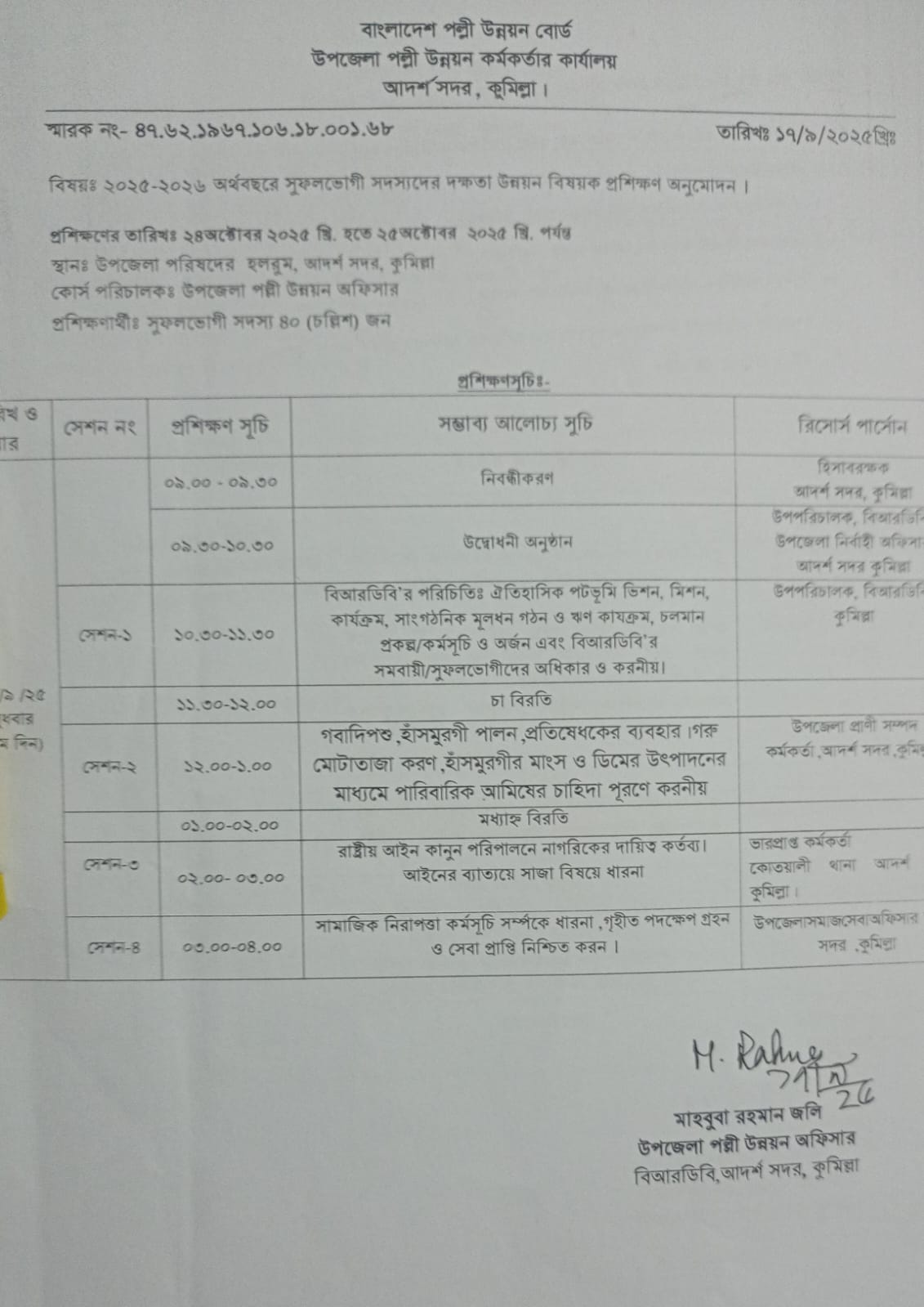 প্রশিক্ষণসূচি(১৭.০৯.২০২৫)